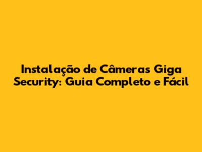 Instalação De Câmeras Giga Security: Guia Completo E Fácil