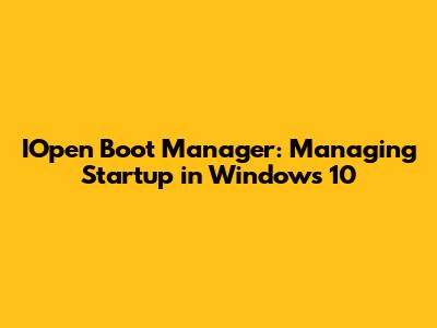 IOpen Boot Manager: Managing Startup In Windows 10