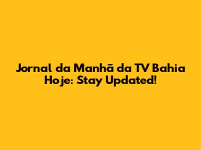 Jornal Da Manhã TV Bahia: Stay Updated!