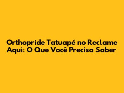 Orthopride Tatuapé No Reclame Aqui: O Que Você Precisa Saber