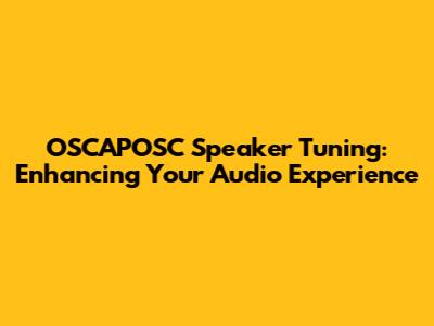 OSCAPOSC Speaker Tuning: Enhancing Your Audio Experience