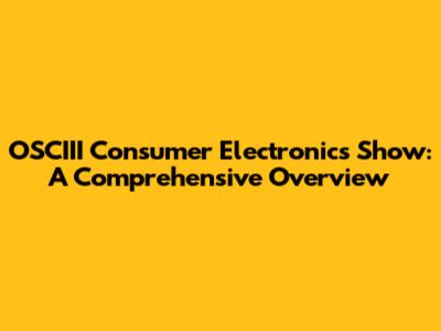 OSCIII Consumer Electronics Show: A Comprehensive Overview