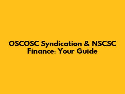 OSCOSC Syndication & NSCSC Finance: Your Guide
