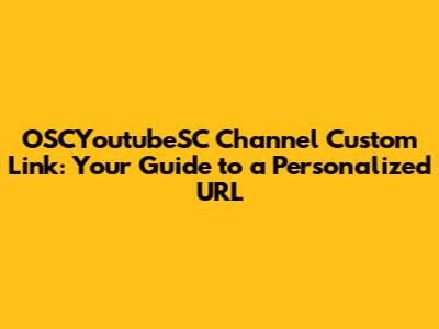 OSCYoutubeSC Channel Custom Link: Your Guide to a Personalized URL