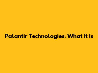 Palantir Technologies: What It Is