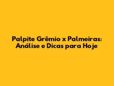 Palpite Grêmio X Palmeiras: Análise E Dicas Para Hoje