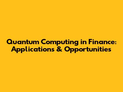 Quantum Computing In Finance: Applications & Opportunities