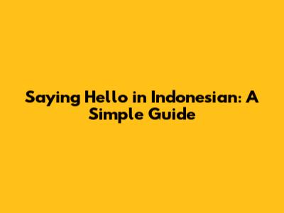Saying Hello In Indonesian: A Simple Guide