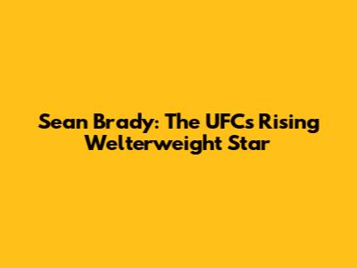 Sean Brady: The UFC's Rising Welterweight Star