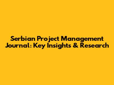 Serbian Project Management Journal: Key Insights & Research