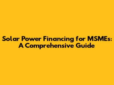 Solar Power Financing For MSMEs: A Comprehensive Guide