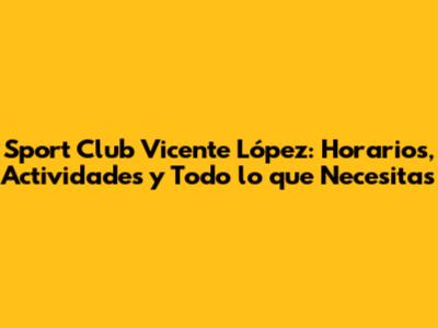Sport Club Vicente López: Horarios, Actividades Y Todo Lo Que Necesitas