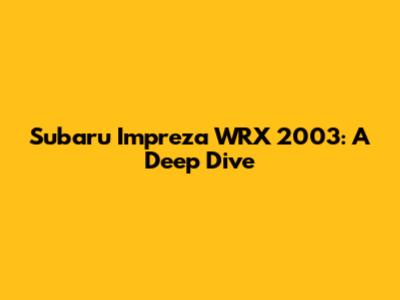 Subaru Impreza WRX 2003: Specs, Performance & More