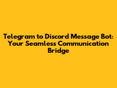 Telegram To Discord Message Bot: Your Seamless Communication Bridge