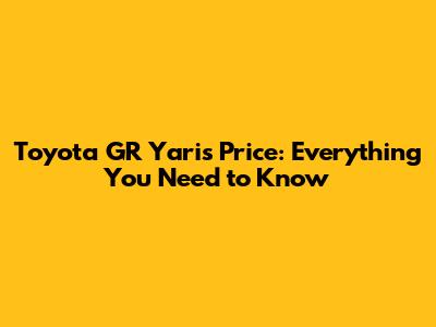 Toyota GR Yaris Price: Everything You Need To Know