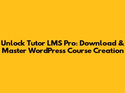 Unlock Tutor LMS Pro: Download & Master WordPress Course Creation