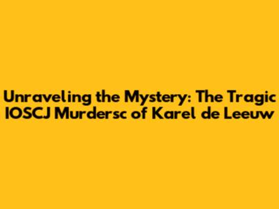 Unraveling The Mystery: The Tragic IOSCJ Murdersc Of Karel De Leeuw