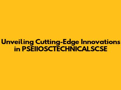 Unveiling Cutting-Edge Innovations In PSEIIOSCTECHNICALSCSE