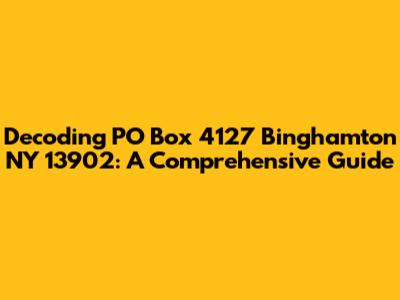 Hey there, folks! Ever wondered about the ins and outs of a PO Box? Specifically, let's dive into PO Box 4127 Binghamton NY 13902. This guide is your ultimate companion to understanding everything about this specific address and how it functions within the beautiful city of Binghamton, New York. We'll explore what a PO Box is, why people use them, and the specific details related to this particular one. So, grab a coffee (or your favorite beverage), and let's get started on this exciting journey of discovery!
