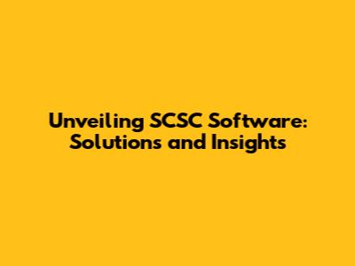 Unveiling SCSC Software: Solutions And Insights
