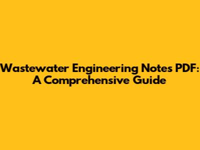Wastewater Engineering Notes PDF: A Comprehensive Guide